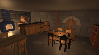 low poly medieval tavern interior